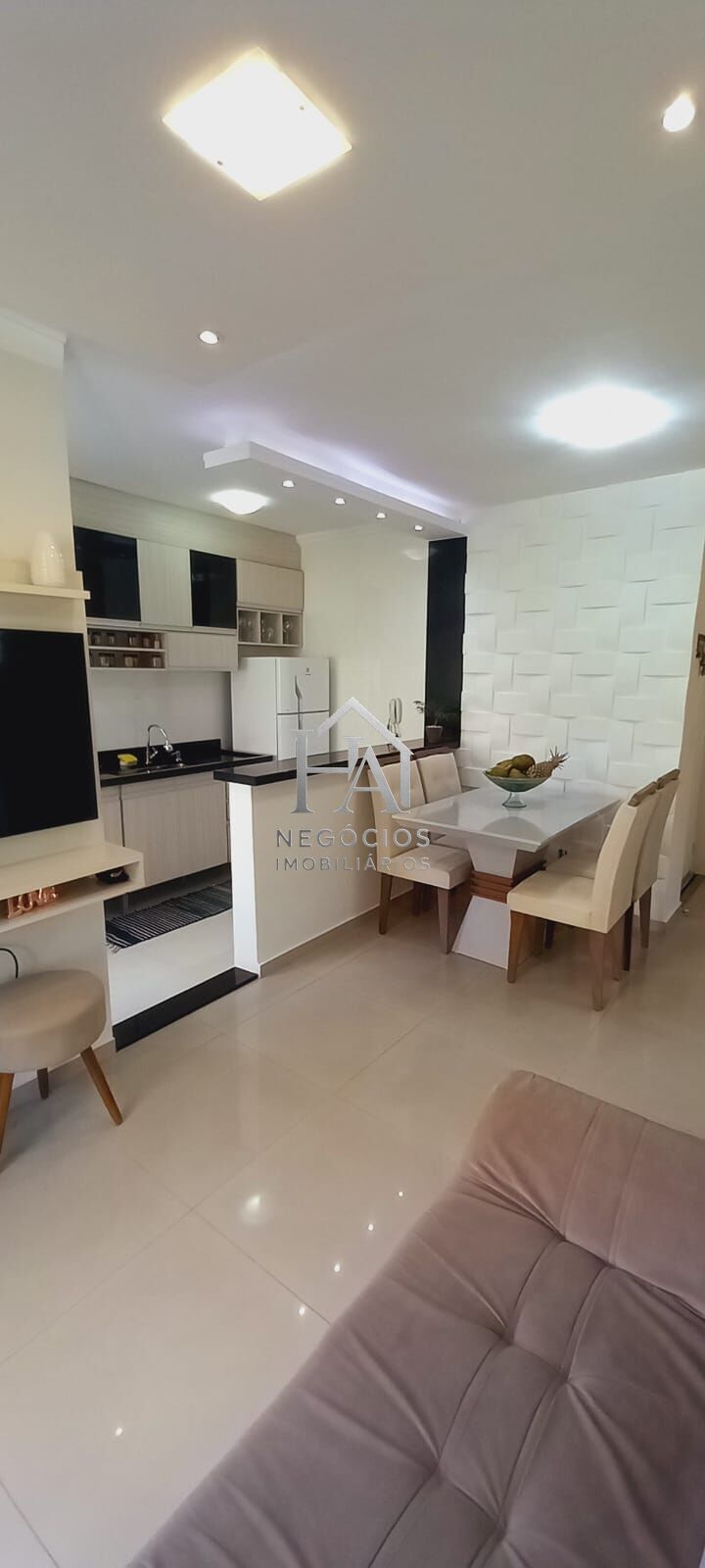 Diferenciais ;Sala com decoração de sanca e iluminação ,parede 3D,cozinha com armários planejados e bancadas em granito, sala painel , dormitório casal com armário planejado criado mudo e cabeceira , piso porcelanato em todo Apartamento, banheiro com box .