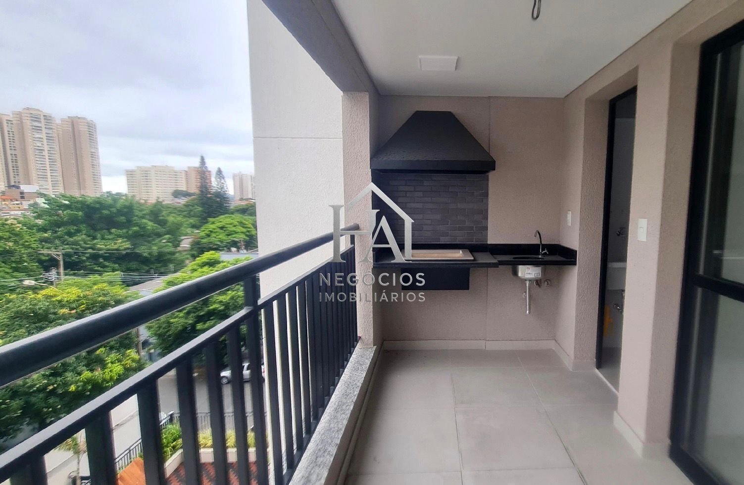 Possui varanda gourmet com churrasqueira a carvão.